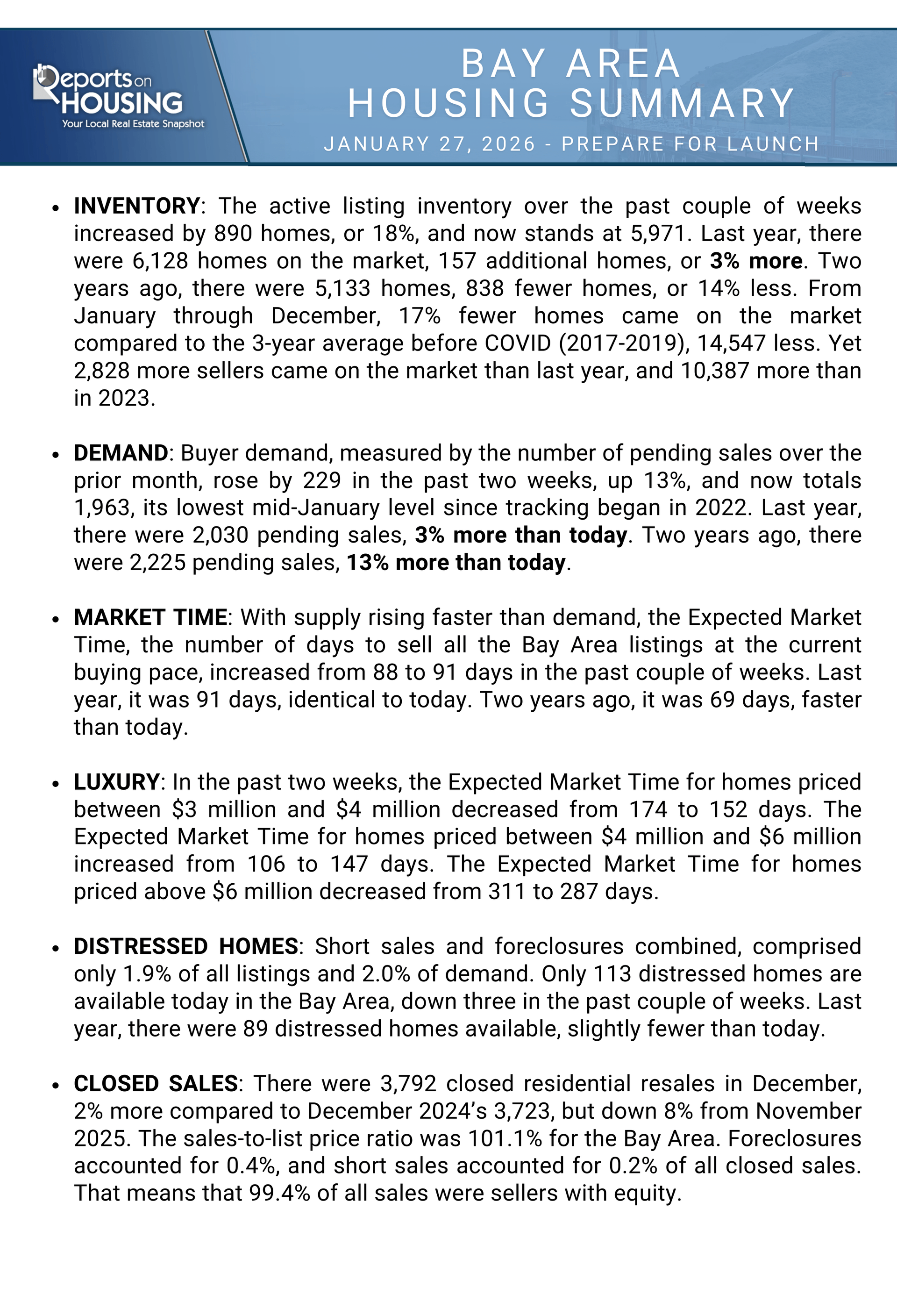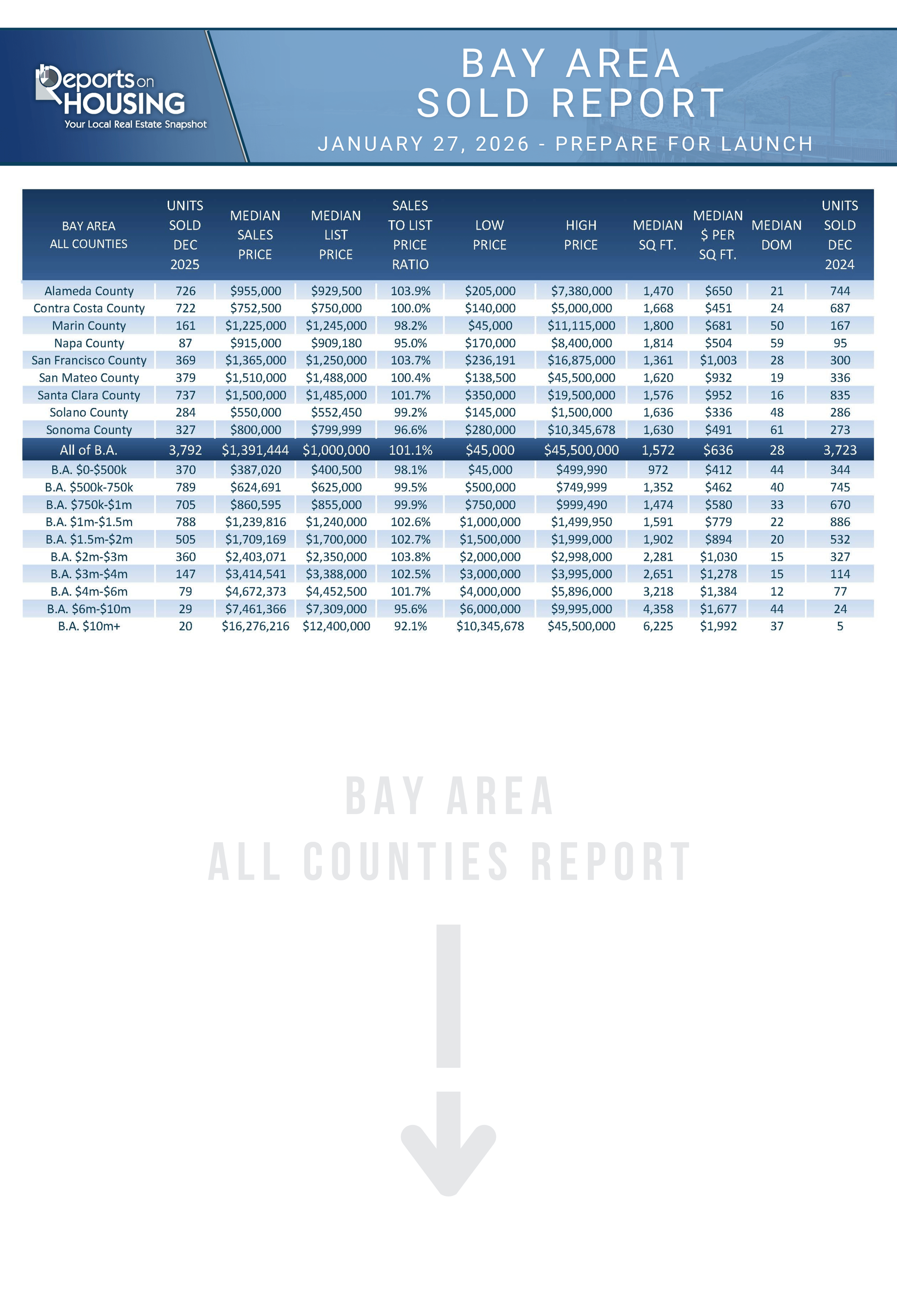 As we move further into the new year, the Bay Area housing market is starting to show its hand. If you’ve worked with me before, are actively navigating the market right now, or are simply paying attention as you think about what might come next, my goal with these updates remains the same, to offer clarity, not noise.